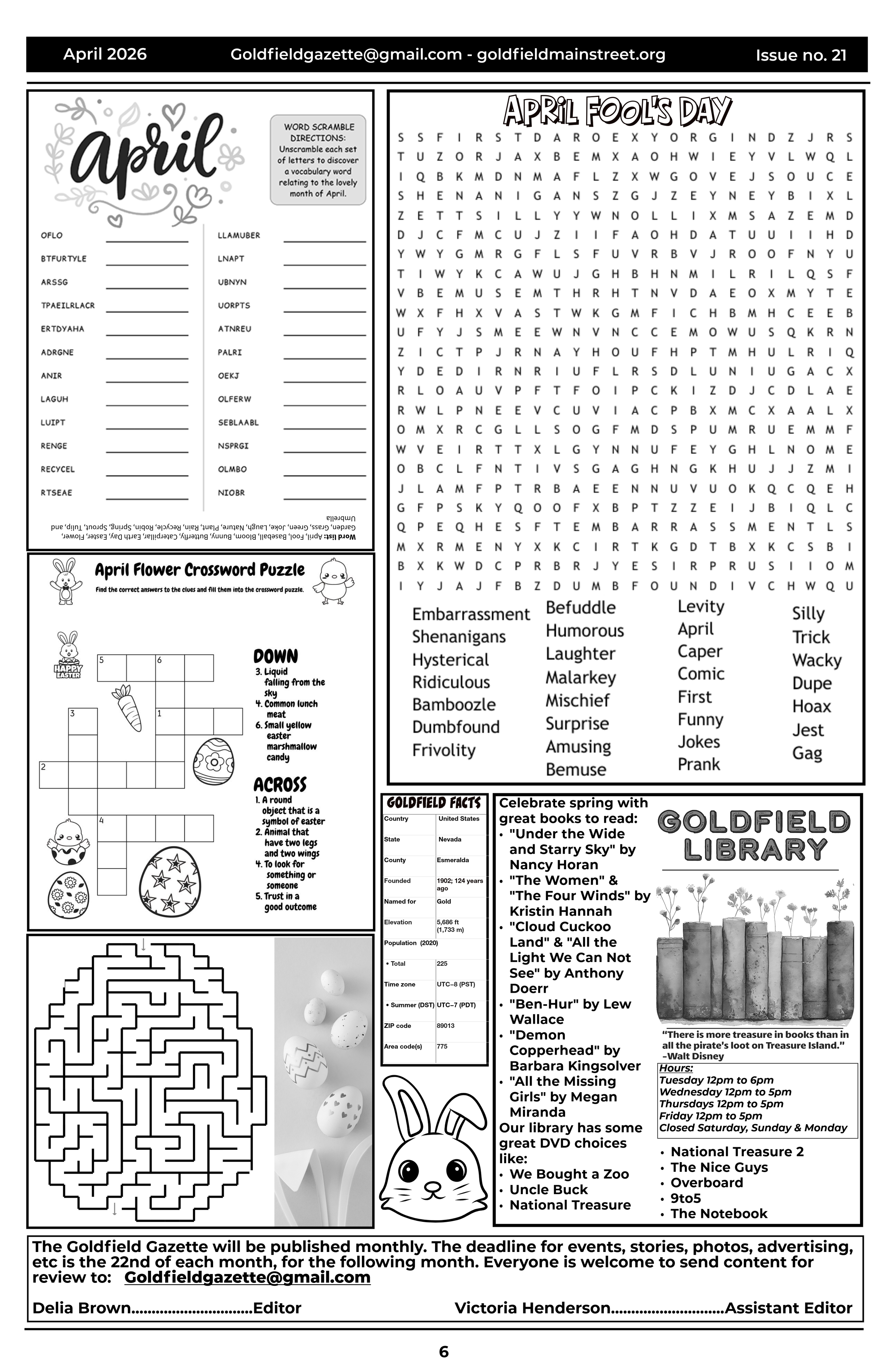 PO Box 354 | Goldfield, Nevada 89013 | goldfieldgazette@gmail.com