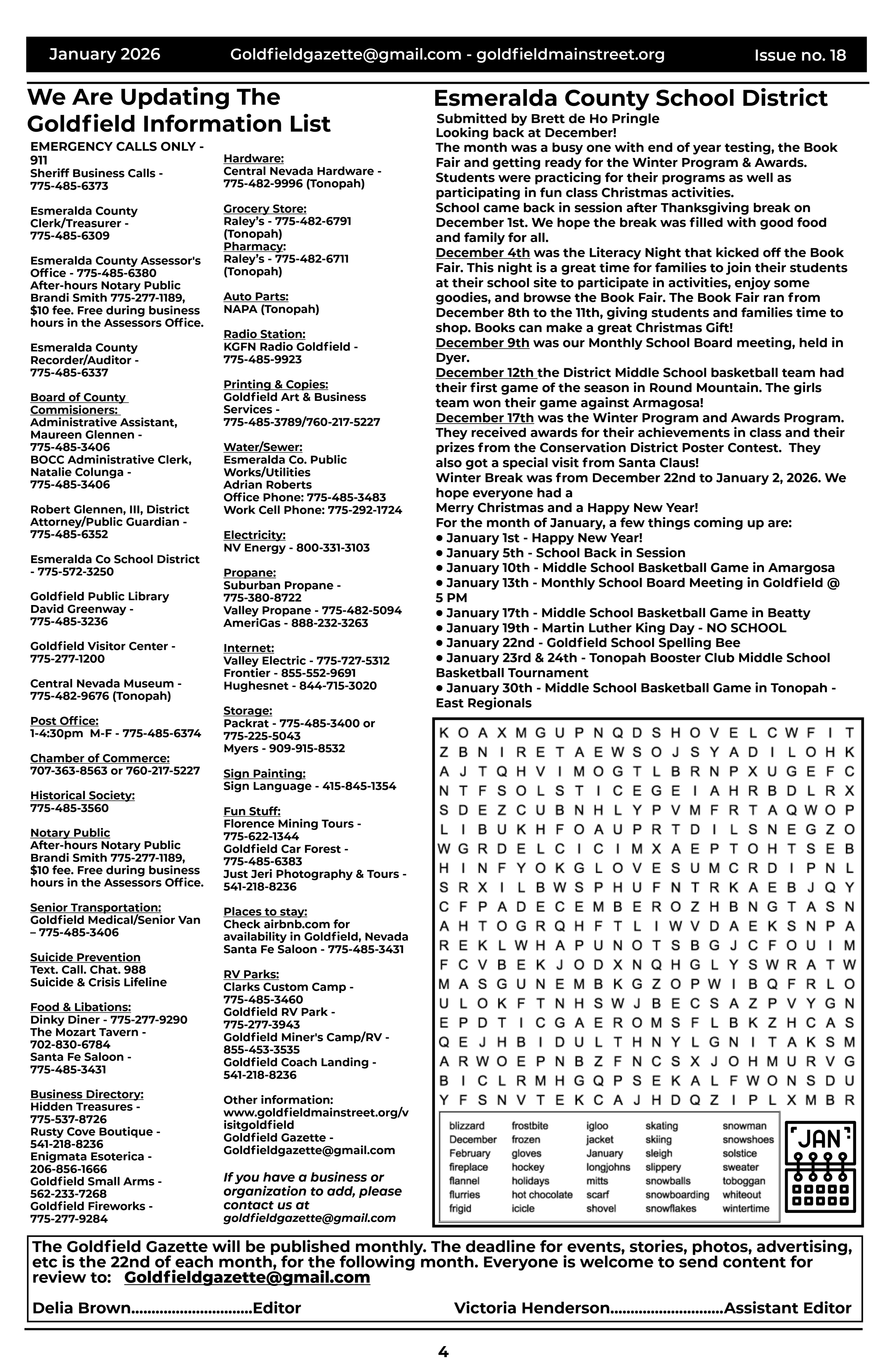 GOLDFIELD GAZETTE Home Subscribe Sign up with your email address to receive a free digital subscription to the Goldfield Gazette. Email Address Sign Up Thank you! February 2026 January 2026 December 2025 November 2025 October 2025 September 2025 August 2025 JULY 2025 JUNE 2025 May 2025 April 2025 March 2025 February 2025 January 2025 December 2024 November 2024 October 2024 September 2024 August 2024